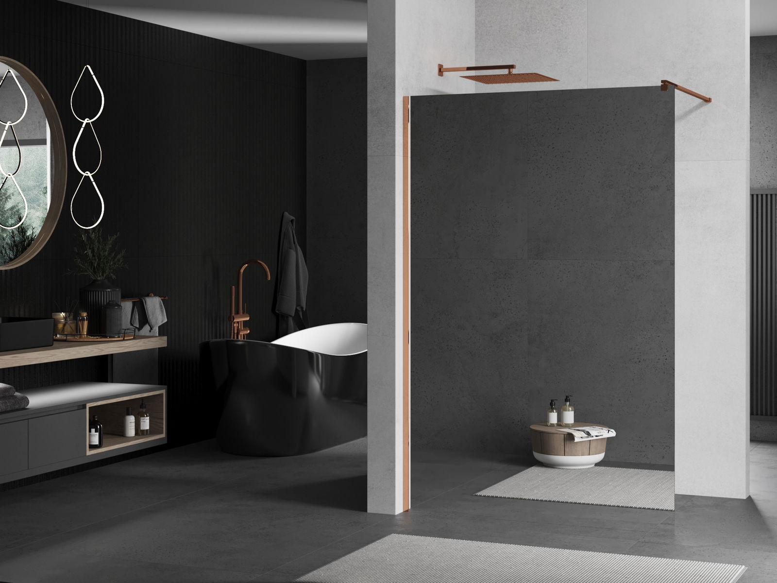 Mexen Kioto Shower Wall Walk-in 100 x 200 cm, Mirror 8 mm, Rose Gold - 800-100-101-60-50