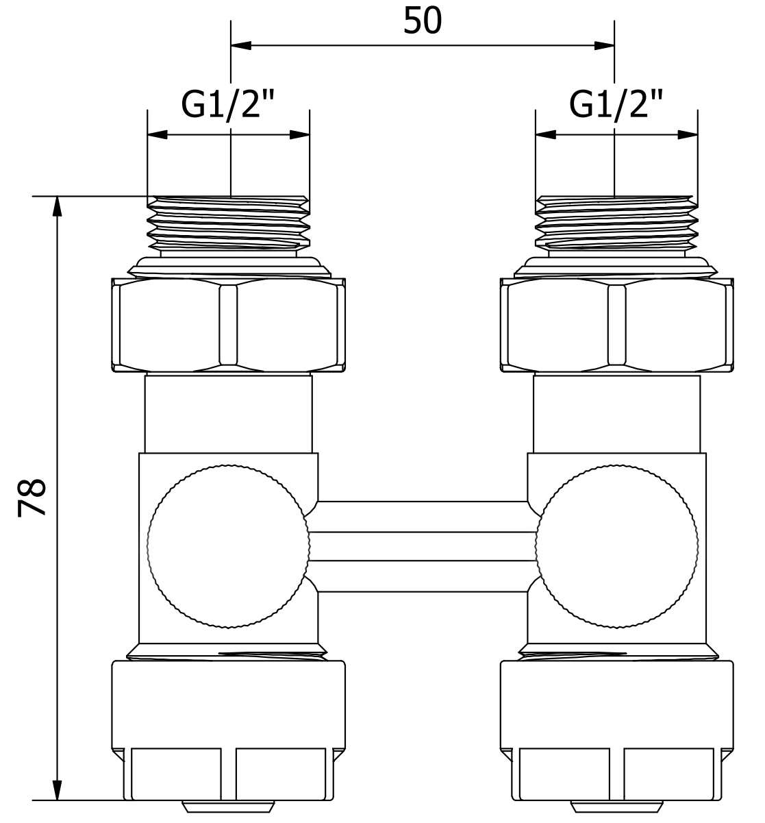 Bottom connection with 50 mm spacing