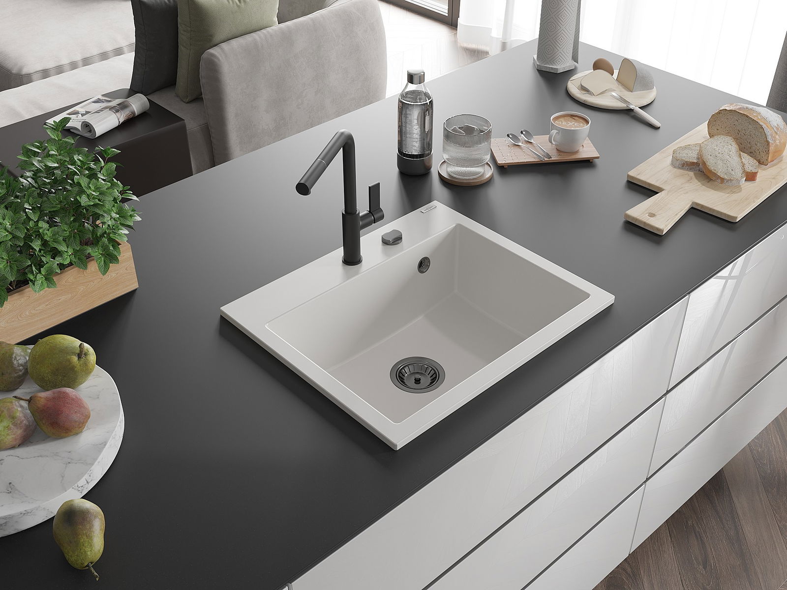 The sink is made from high-quality granite. It serves as an elegant and, above all, practical addition to any kitchen, regardless of its style. The high quality and durability of granite ensure many years of use.