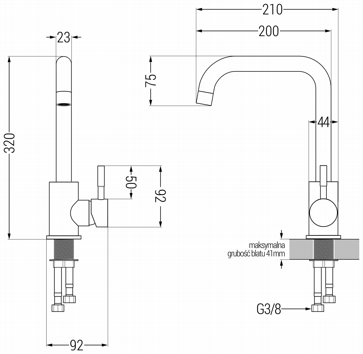 Spout Reach: 210 mm
