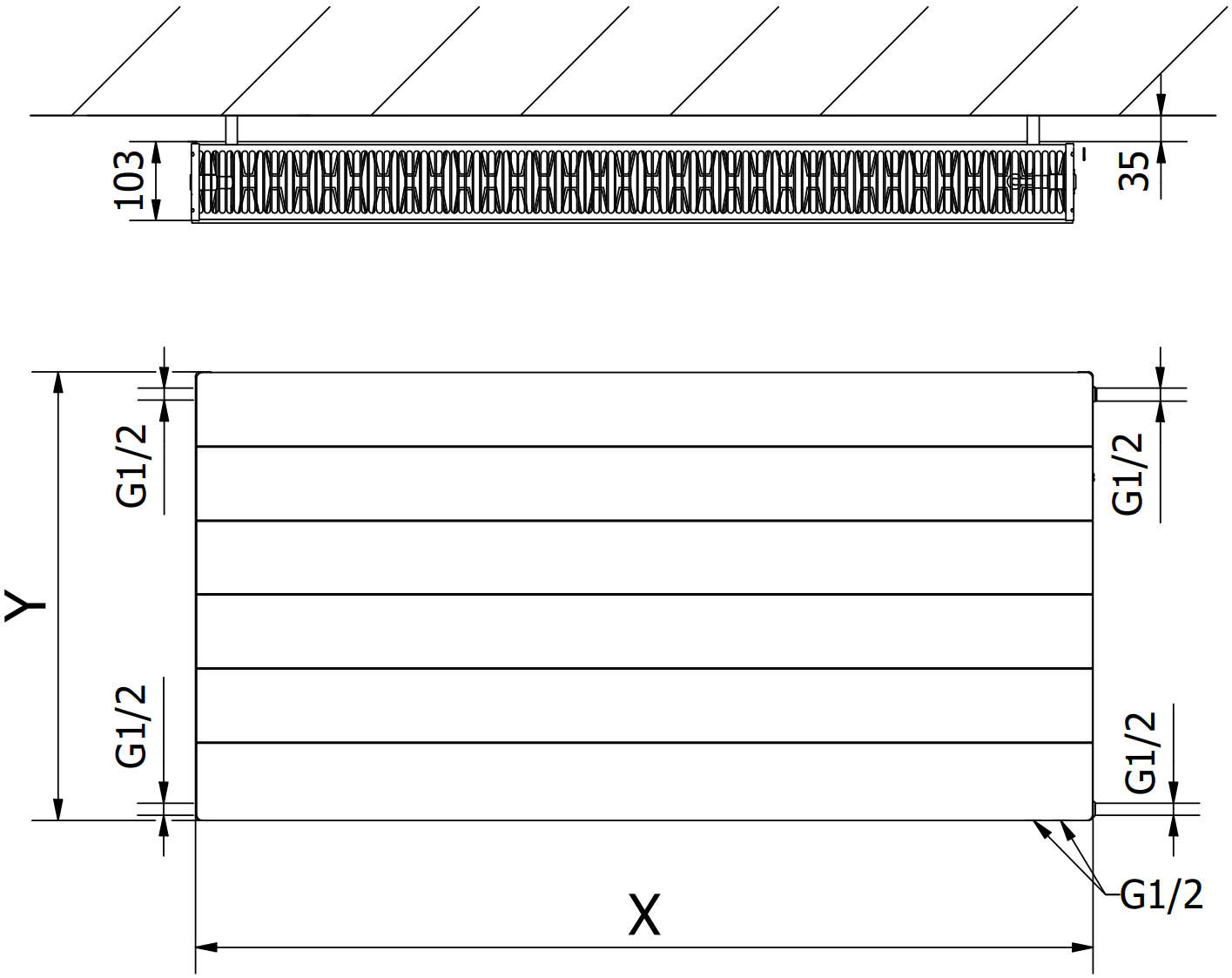 - 2xG ½″ at the bottom on the right or left side