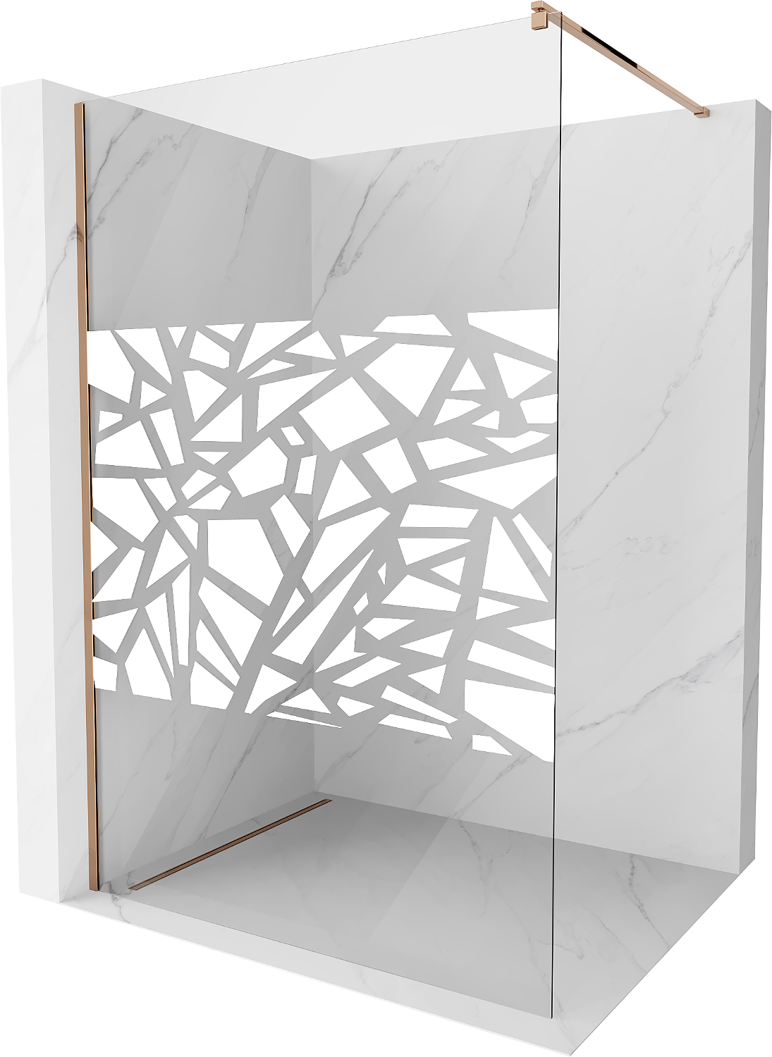 Mexen Kioto Walk-in shower wall 120 x 200 cm, white pattern 8 mm, pink gold - 800-120-101-60-85