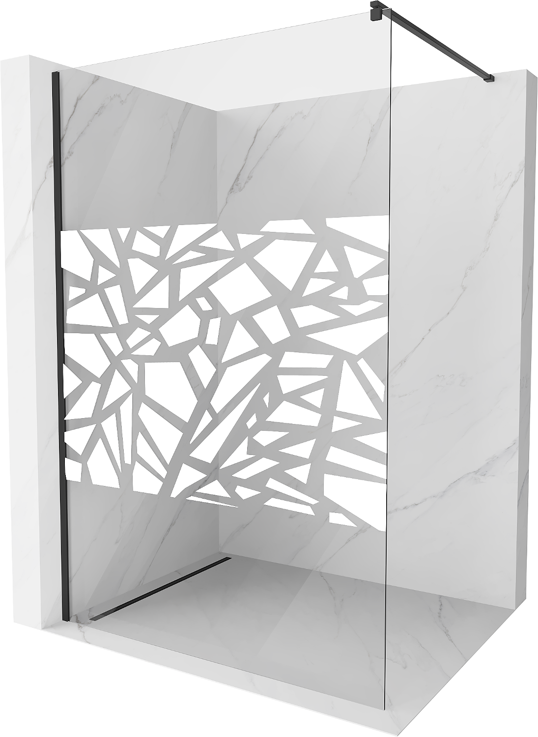 Mexen Kioto shower wall 130 x 200 Walk-in cm, white pattern 8 mm, black - 800-130-101-70-85