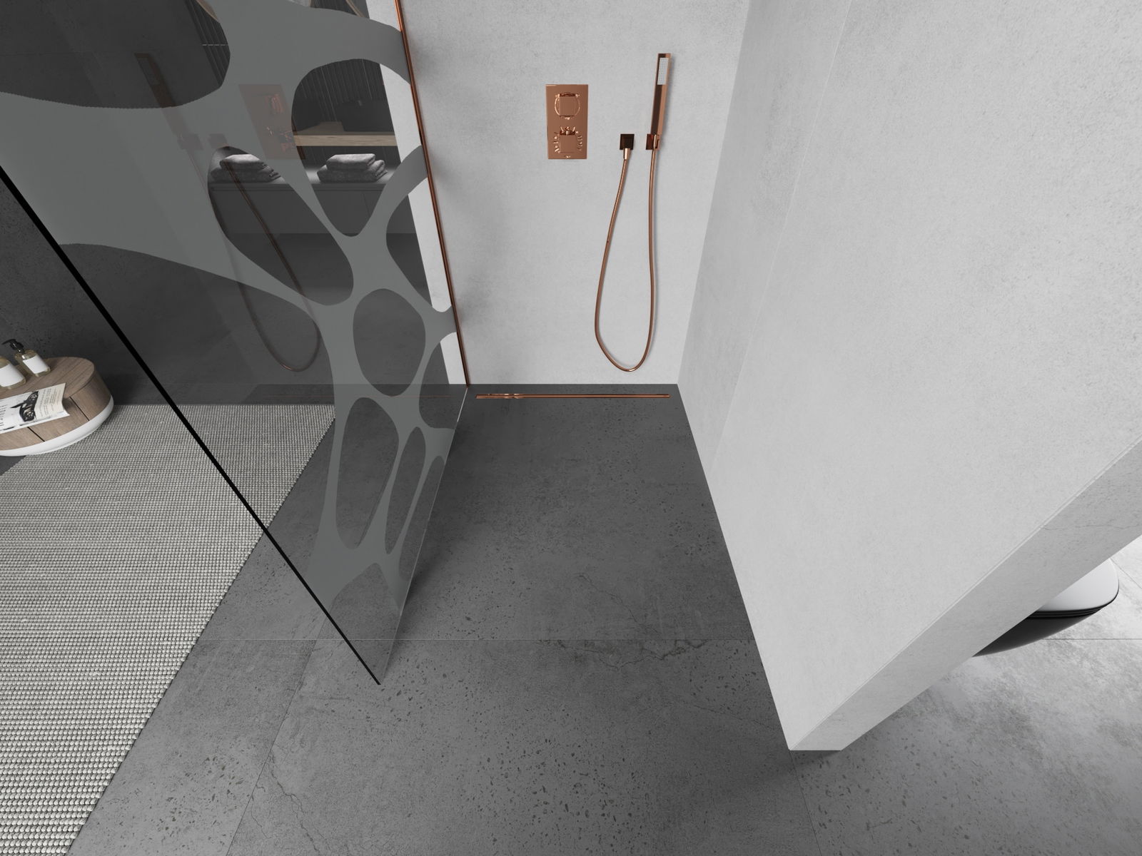 Mexen Kioto shower screen Walk-in 70 x 200 cm, white wave 8 mm, rose gold - 800-070-101-60-97