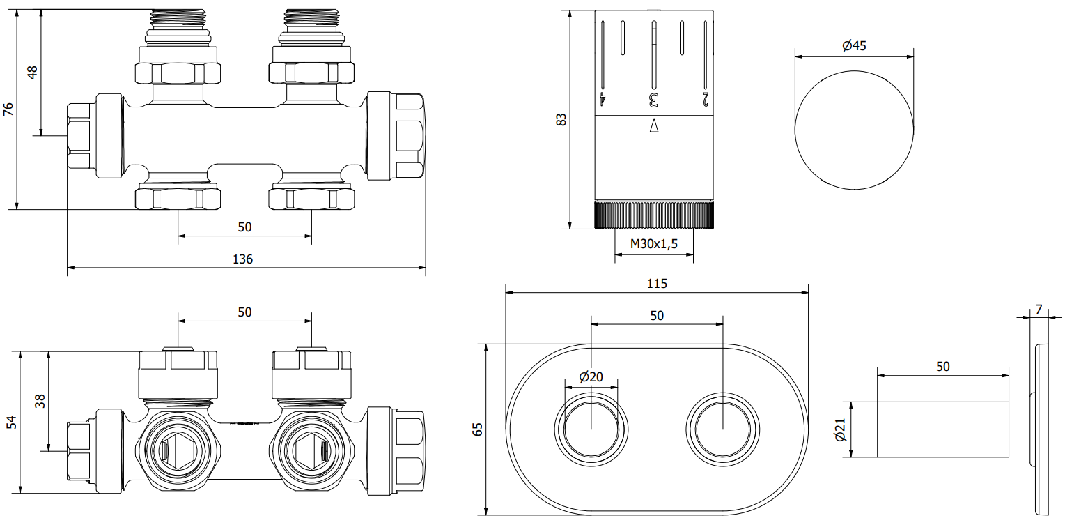 Set with a stainless steel rosette and brass sleeve combines two materials with exceptional properties. Stainless steel provides an aesthetic finish and resistance to corrosion, while brass guarantees durability and strength when connecting the elements of the heating system.
