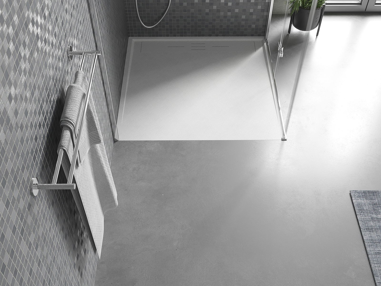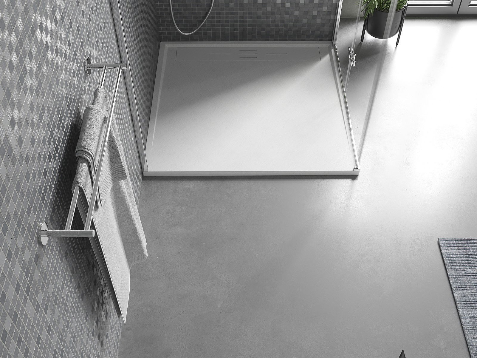The shower tray has a low threshold, which makes it easier to enter and exit the shower. It adds a unique and timeless finish to the room, making the bathroom a comfortable and aesthetically pleasing place for daily relaxation.