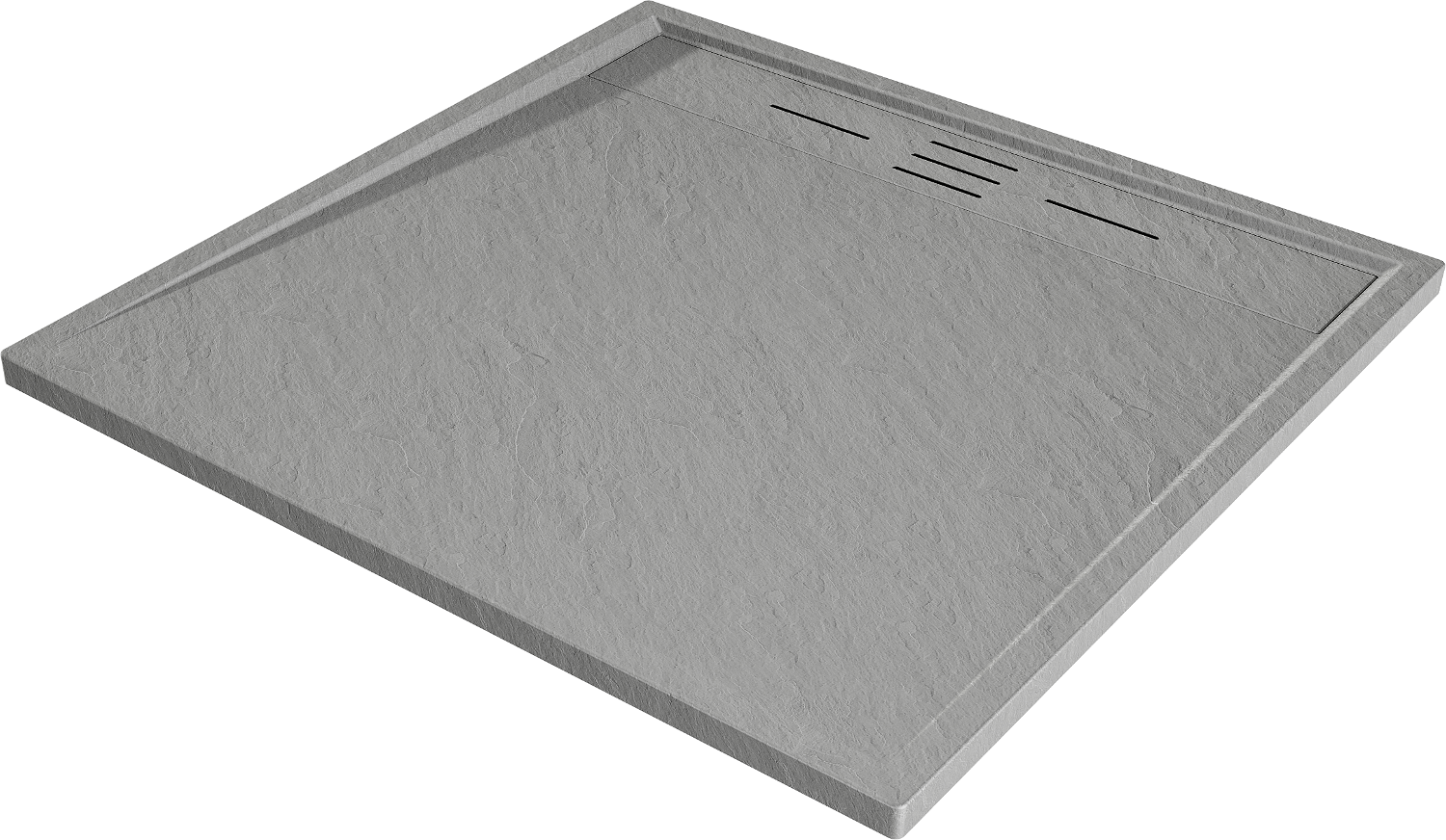 The surface of the shower tray resembles stone in its structure. It is a unique combination of a natural appearance with modern interior design. It adds character, enhances the aesthetics and elegance of the bathroom decor, and delights with its form.