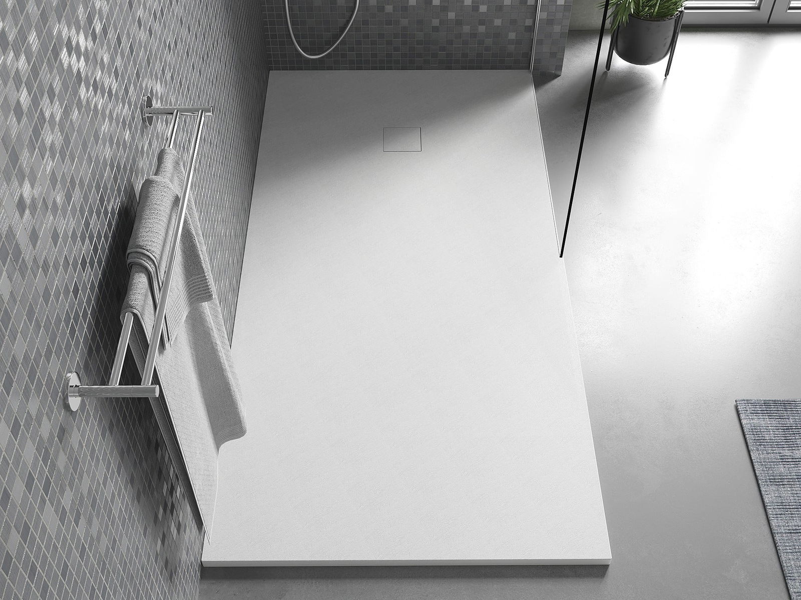 The shower tray is designed in such a way that water can freely flow towards the drain. It ensures quick and effective drainage of water from the surface of the shower tray, preventing the formation of puddles and flooding the bathroom.