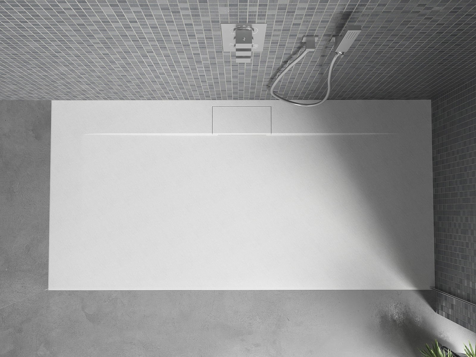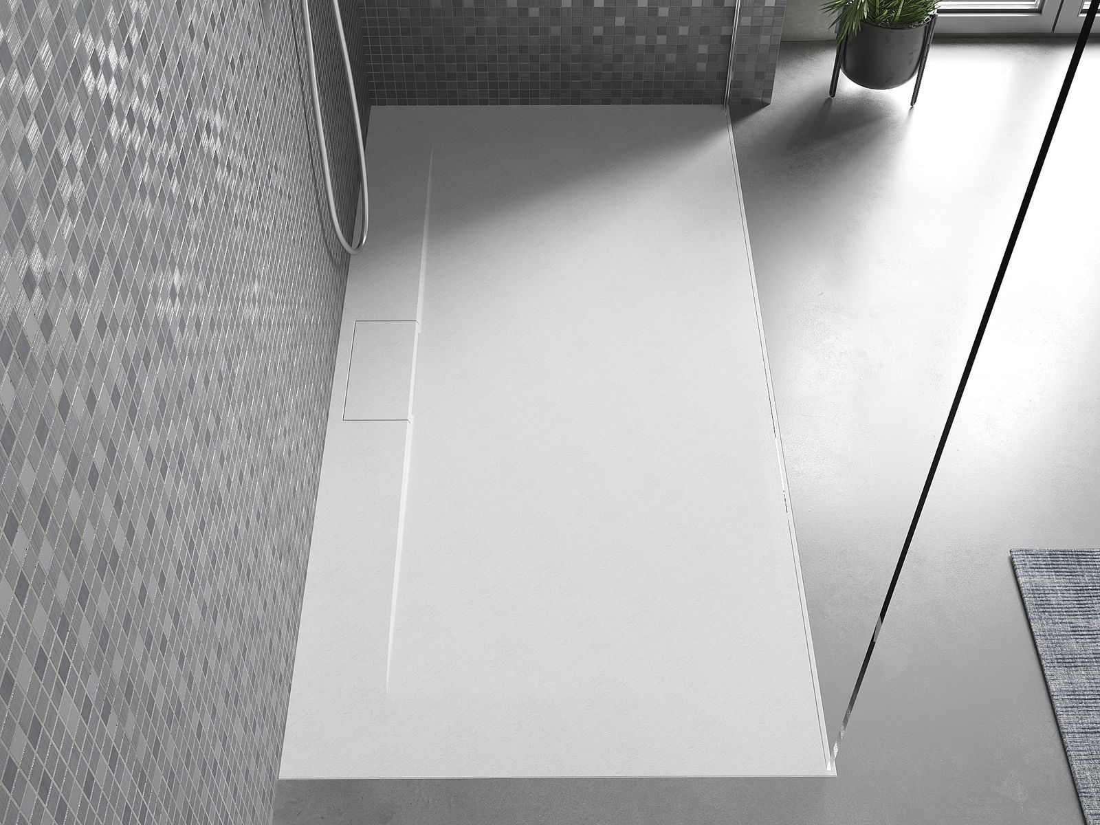 The shower tray is designed in such a way that water can freely flow towards the drain. It ensures quick and effective drainage of water from the surface of the shower tray, preventing the formation of puddles and flooding the bathroom.