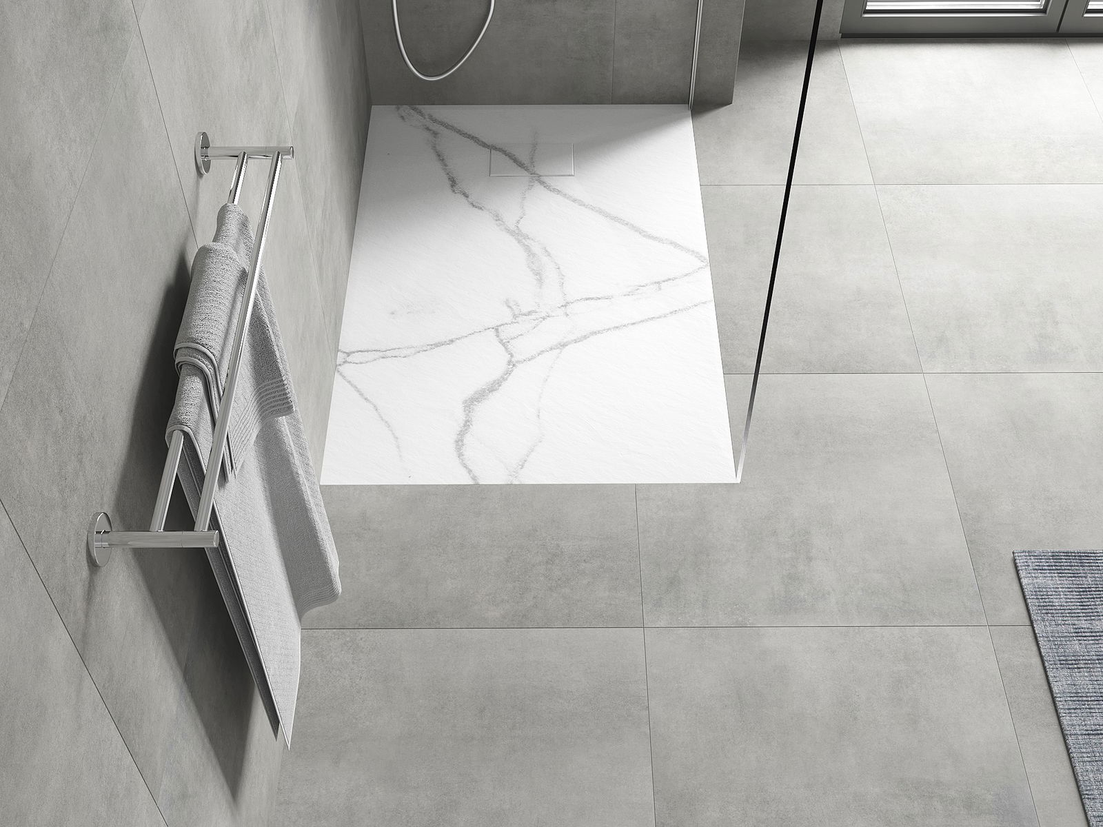 The shower tray is designed in such a way that water can freely flow towards the drain. It ensures quick and effective drainage of water from the surface of the shower tray, preventing the formation of puddles and flooding the bathroom.