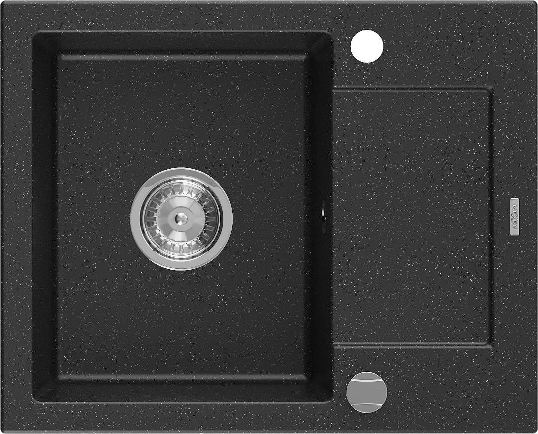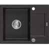 Mexen Enzo granite sink single-bowl with drainer 576 x 465 mm, black/silver metallic, chrome siphon - 6506571005-73