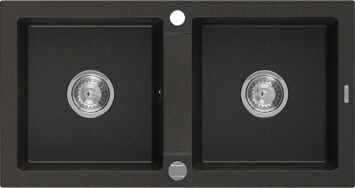Mexen Mario 2-bowl granite sink 820 x 436 mm, black/gold metallic, chrome siphon - 6504822000-75