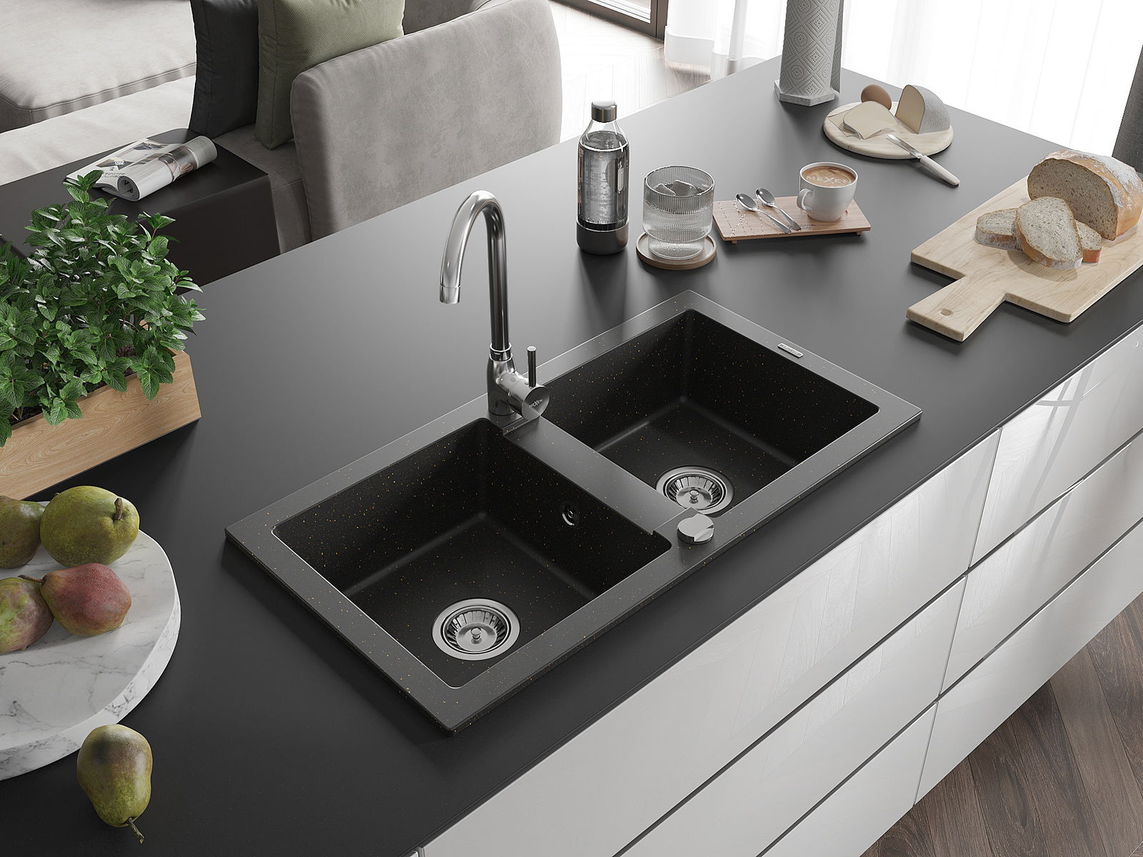 The sink is made from high-quality granite. It serves as an elegant and, above all, practical addition to any kitchen, regardless of its style. The high quality and durability of granite ensure many years of use.