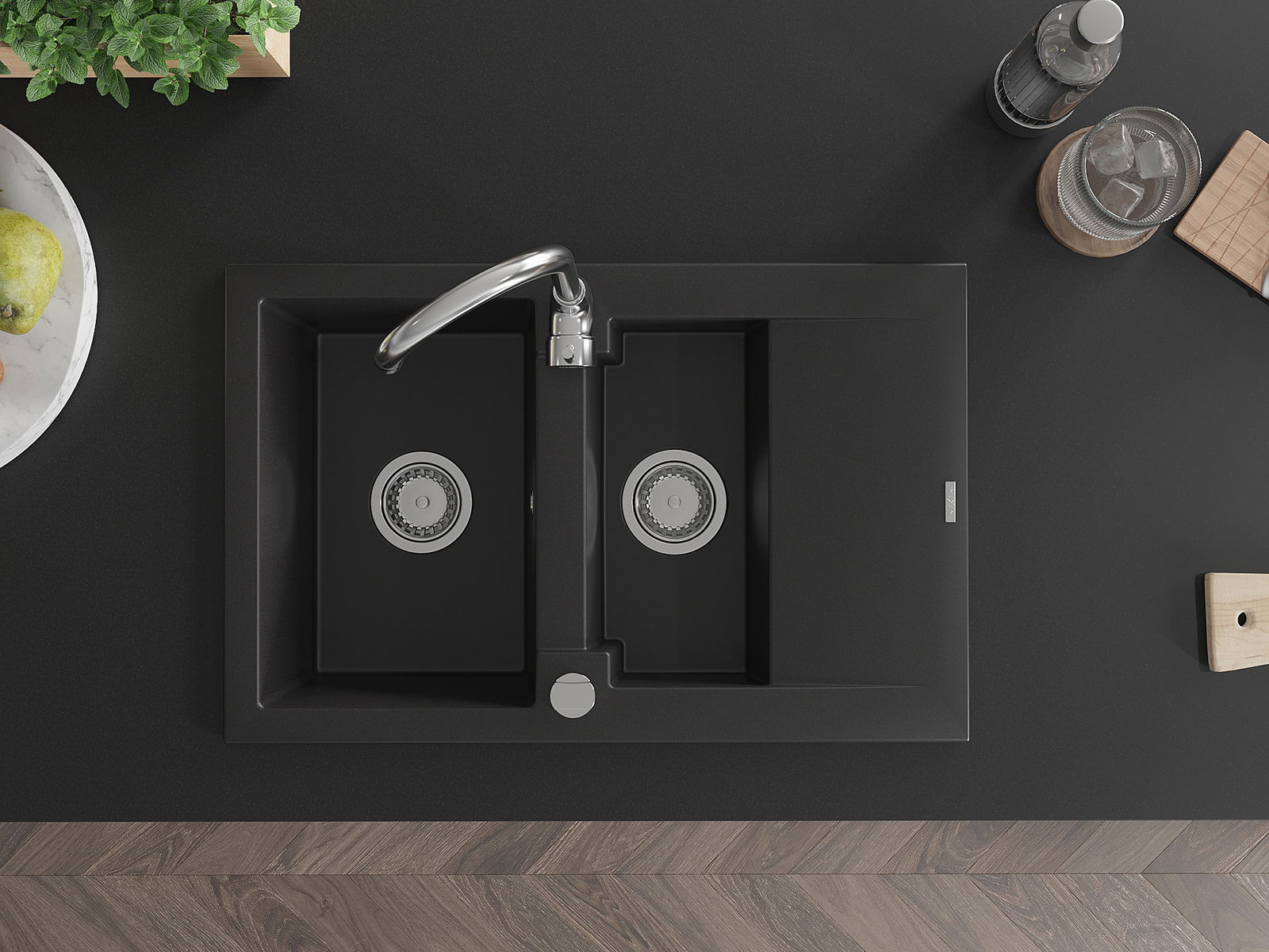 Choosing a sink with a draining board is a practical solution that allows you to set aside washed dishes or vegetables and fruits. The draining board makes daily cooking easier and helps maintain order in the kitchen.