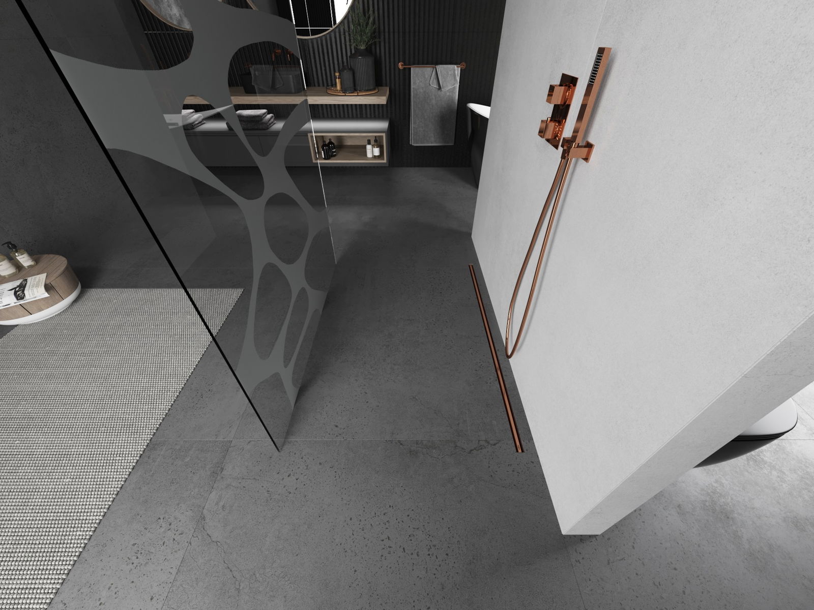 Mexen Kioto freestanding shower wall 120 x 200 cm, white wave 8 mm, brushed copper - 800-120-002-65-97