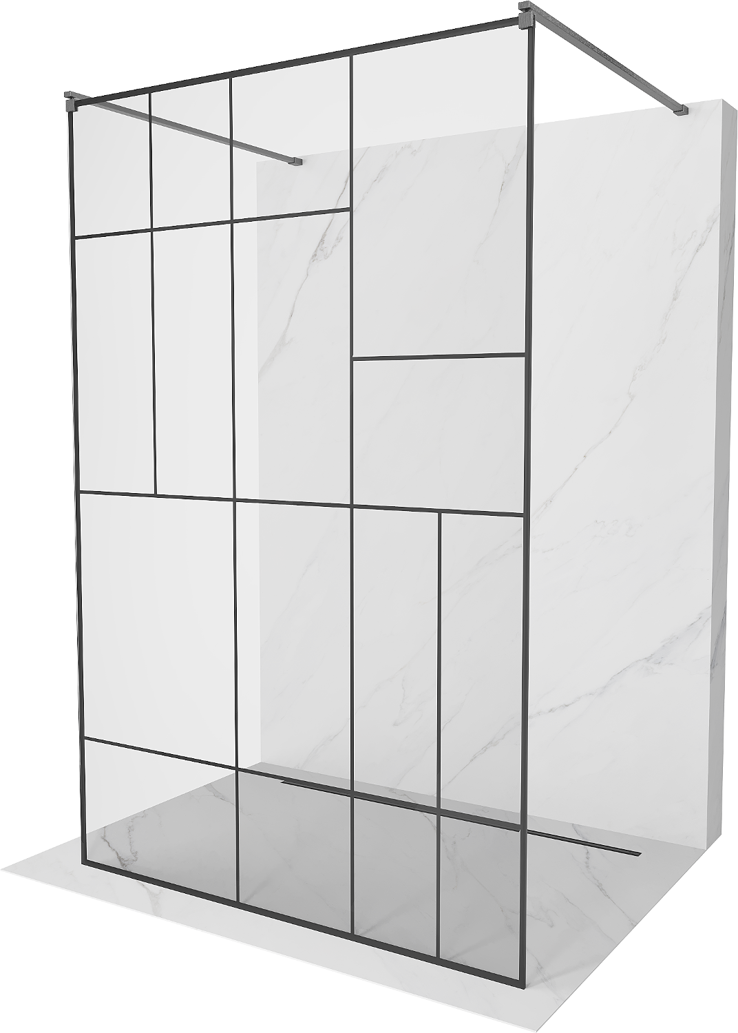 Mexen Kioto 100 x 200 cm Freestanding Shower Wall, Black Pattern 8 mm, Brushed Gun Gray - 800-100-002-66-78