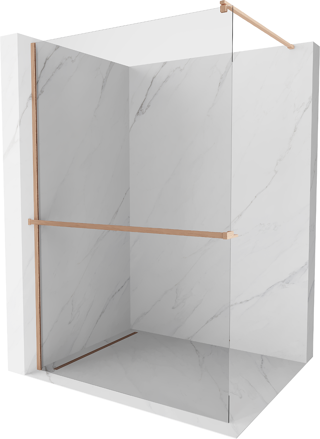 Mexen Kioto+ shower wall with Walk-in shelf 100 x 200 cm, transparent, brushed copper - 800-100-121-65-00