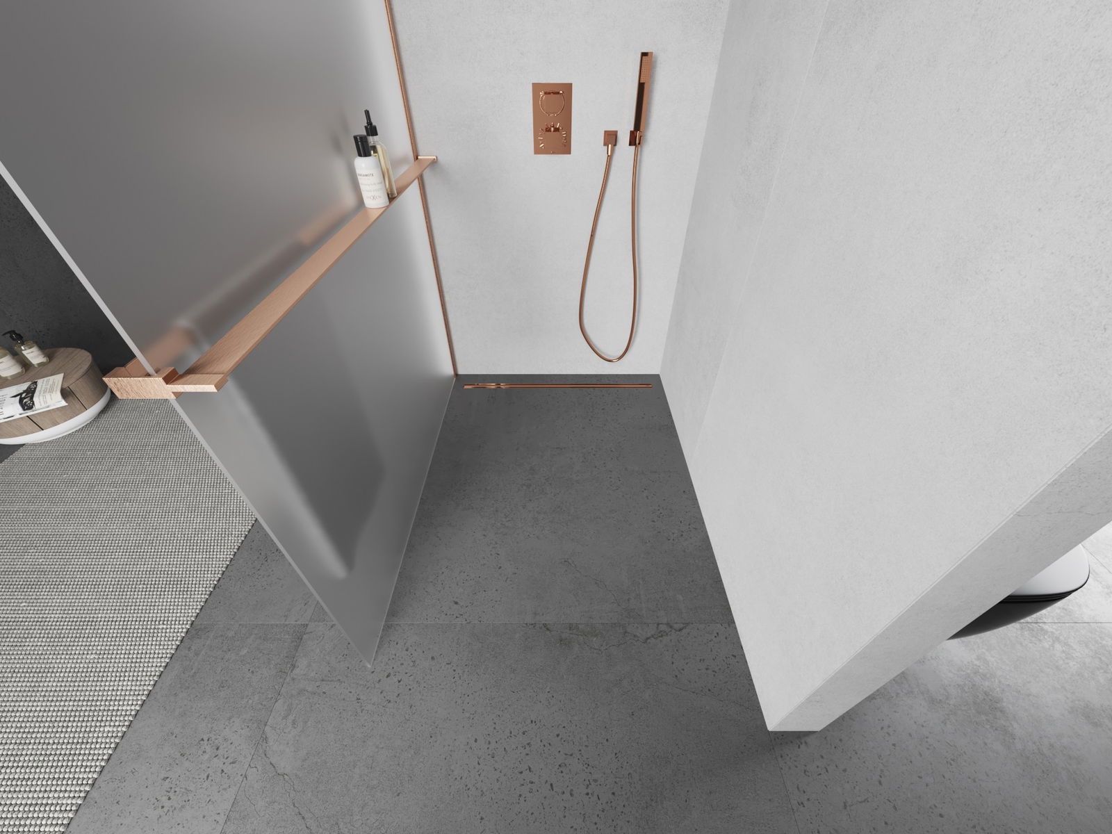 Mexen Kioto+ Shower Screen with Shelf Walk-in 80 x 200 cm, Frosted, Brushed Copper - 800-080-121-65-30
