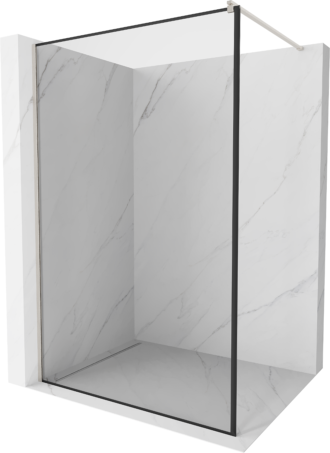Mexen Kioto Walk-in Shower Wall 130 x 200 cm, Black Frame 8 mm, Brushed Nickel - 800-130-101-97-70