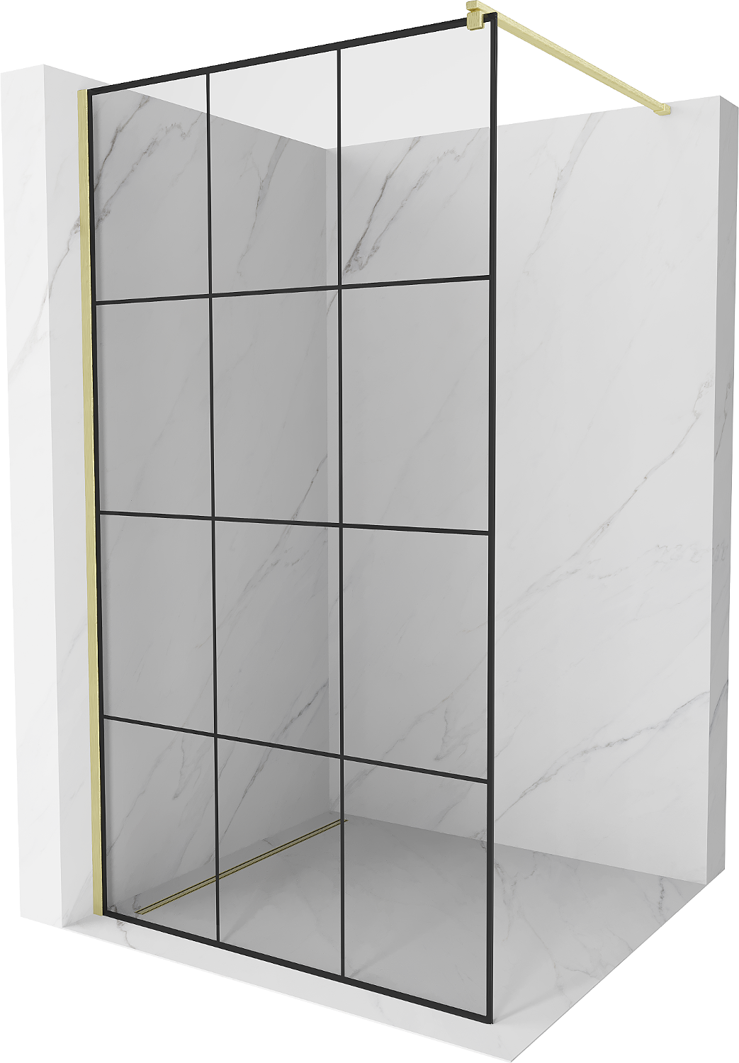 Mexen Kioto Walk-in shower wall 120 x 200 cm, black grid 8 mm, brushed gold - 800-120-101-55-77