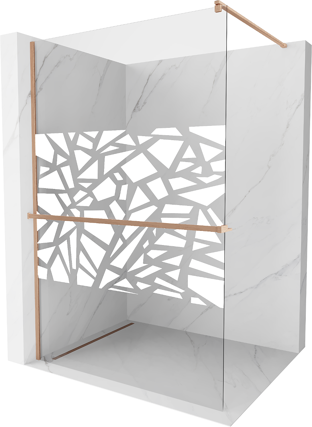 Mexen Kioto+ shower wall with shelf Walk-in 90 x 200 cm, white pattern, brushed copper - 800-090-121-65-85