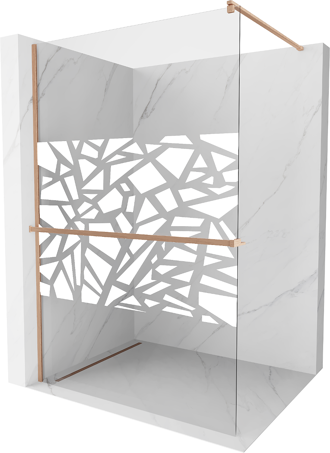 Mexen Kioto+ 110 x 200 cm Walk-in Shower Wall with Shelf, White Pattern, Brushed Copper - 800-110-121-65-85