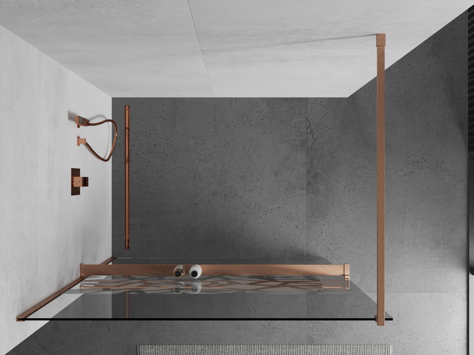 Mexen Kioto+ shower wall with shelf Walk-in 120 x 200 cm, white pattern, brushed copper - 800-120-121-65-85