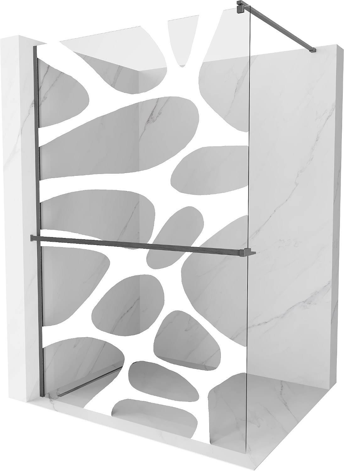 Mexen Kioto+ shower wall with shelf Walk-in 80 x 200 cm, white wave, gun gray brushed - 800-080-121-66-97