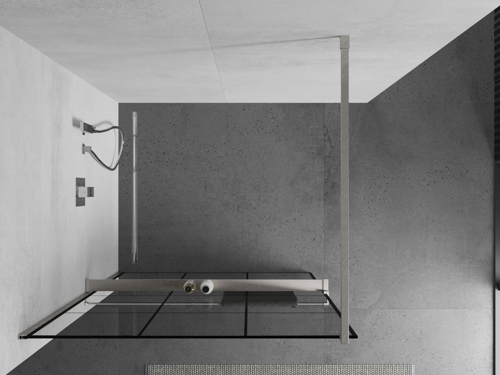 Mexen Kioto+ walk-in shower wall with shelf 100 x 200 cm, black grid, brushed nickel - 800-100-121-97-77