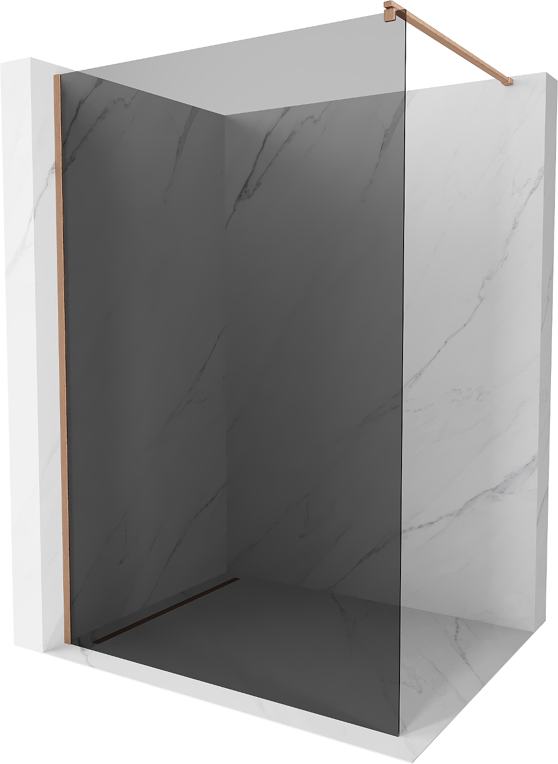 Mexen Kioto Walk-in Shower Wall 130 x 200 cm, Graphite 8 mm, Brushed Copper - 800-130-101-65-40