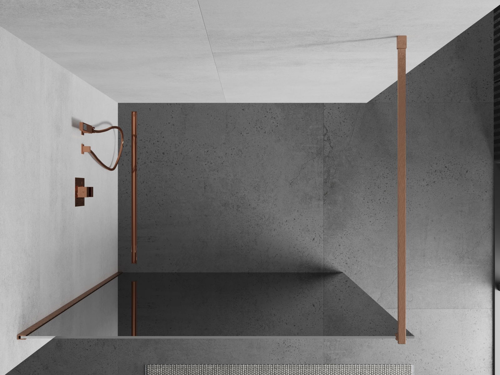 Mexen Kioto Walk-in Shower Screen 100 x 200 cm, Mirror 8 mm, Brushed Copper - 800-100-101-65-50