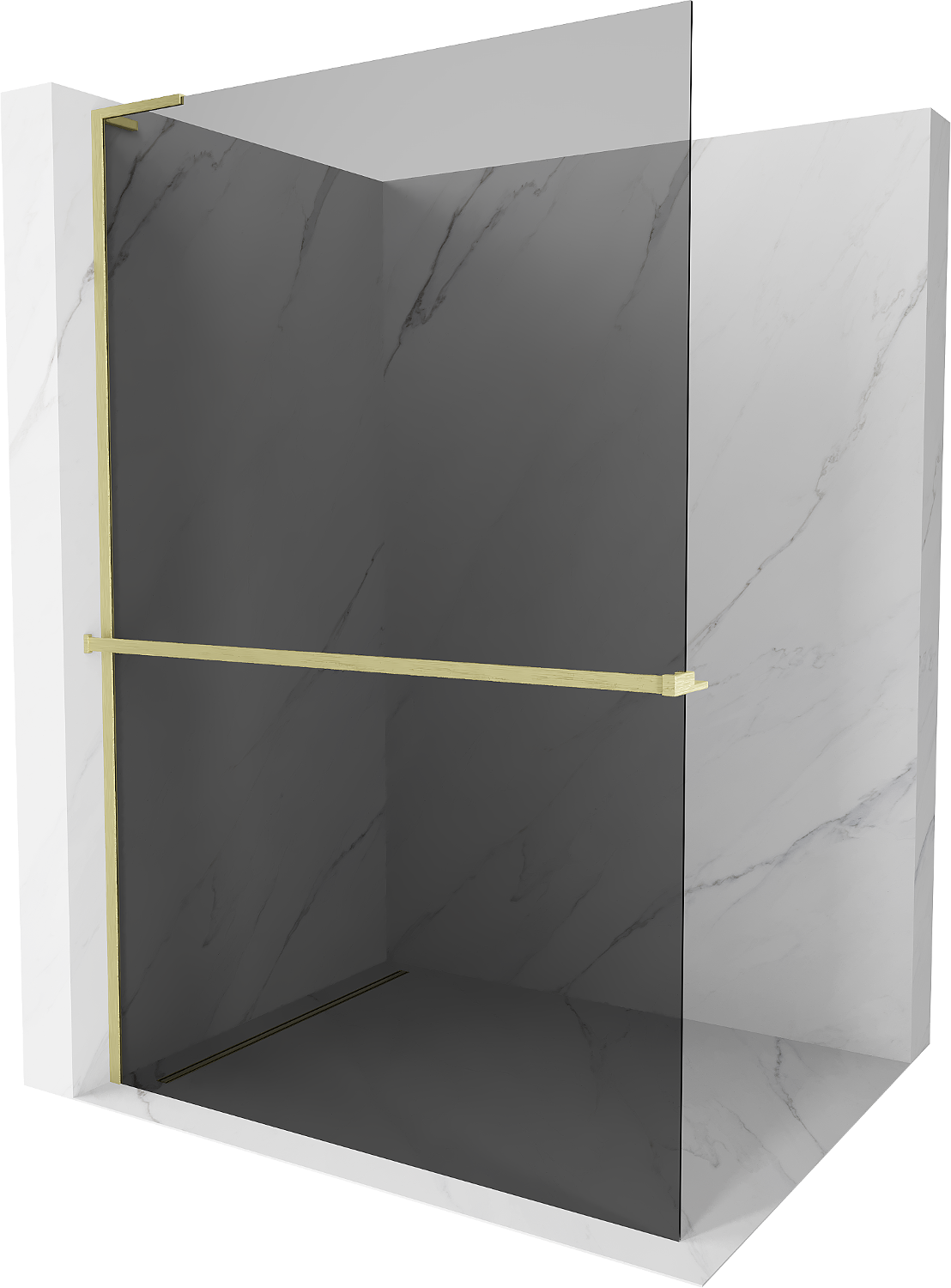 Mexen Kioto+ L shower wall with shelf Walk-in 110 x 200 cm, graphite, brushed gold - 800-110-123-55-40