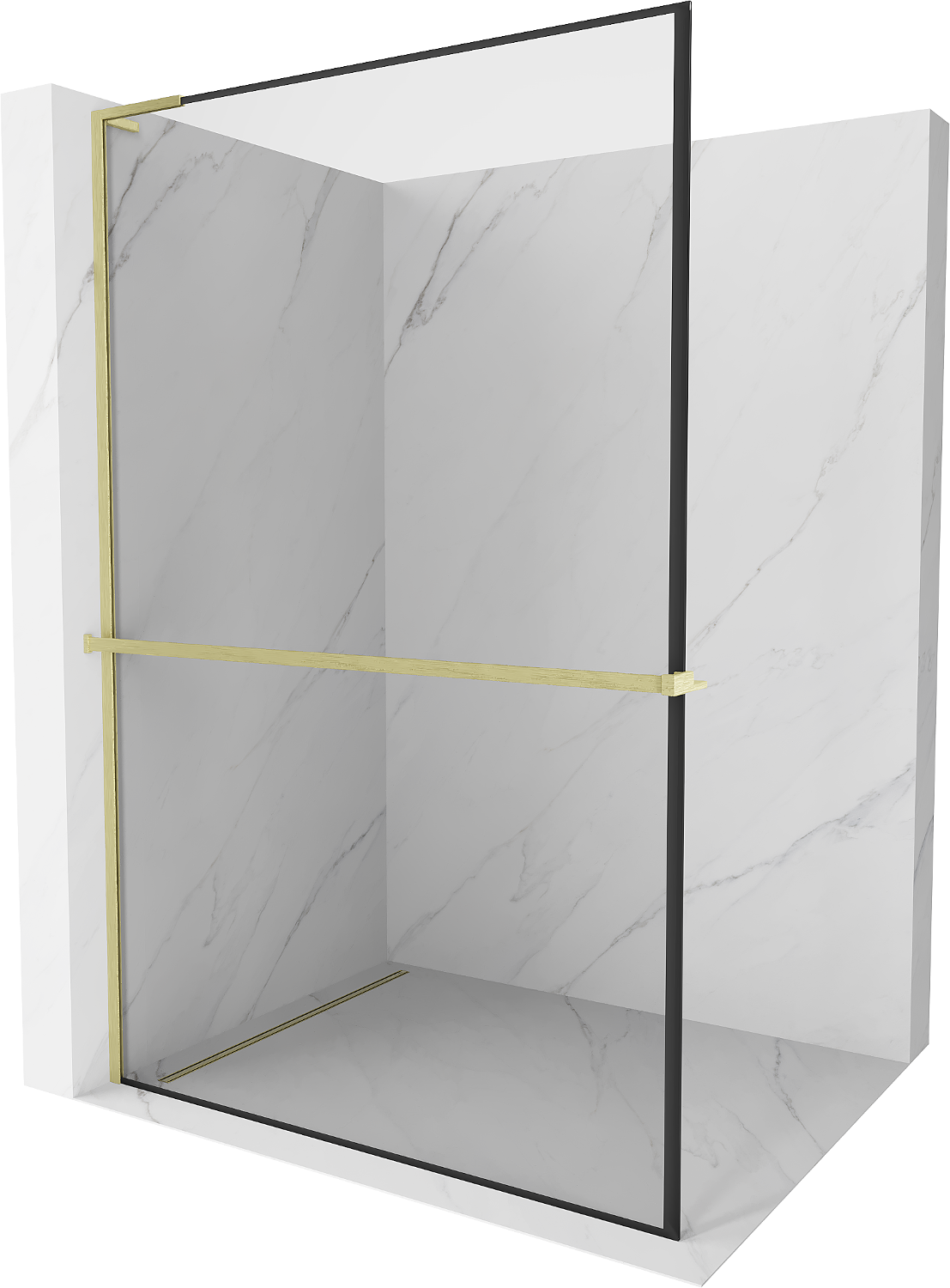 Mexen Kioto+ L shower wall with Walk-in shelf 60 x 200 cm, black frame, brushed gold - 800-060-123-55-70