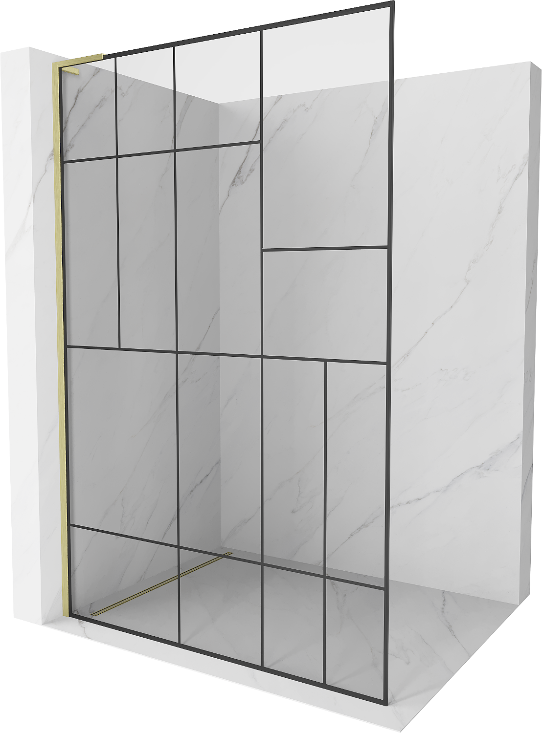 Mexen Kioto L Walk-in Shower Wall 80 x 200 cm, black pattern, brushed gold - 800-080-103-55-78