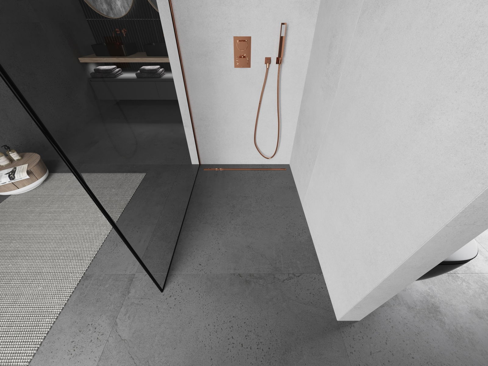 Mexen Kioto L Shower Wall Walk-in 100 x 200 cm, black frame, pink gold - 800-100-103-60-70