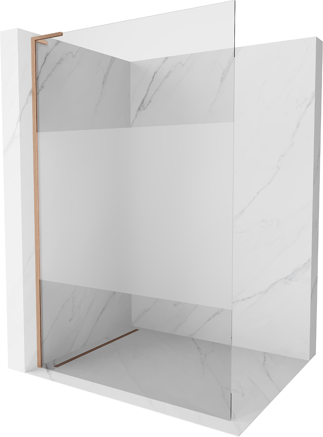 Mexen Kioto L Walk-in Shower Panel 80 x 200 cm, Transparent/Frosted, Brushed Copper - 800-080-103-65-35