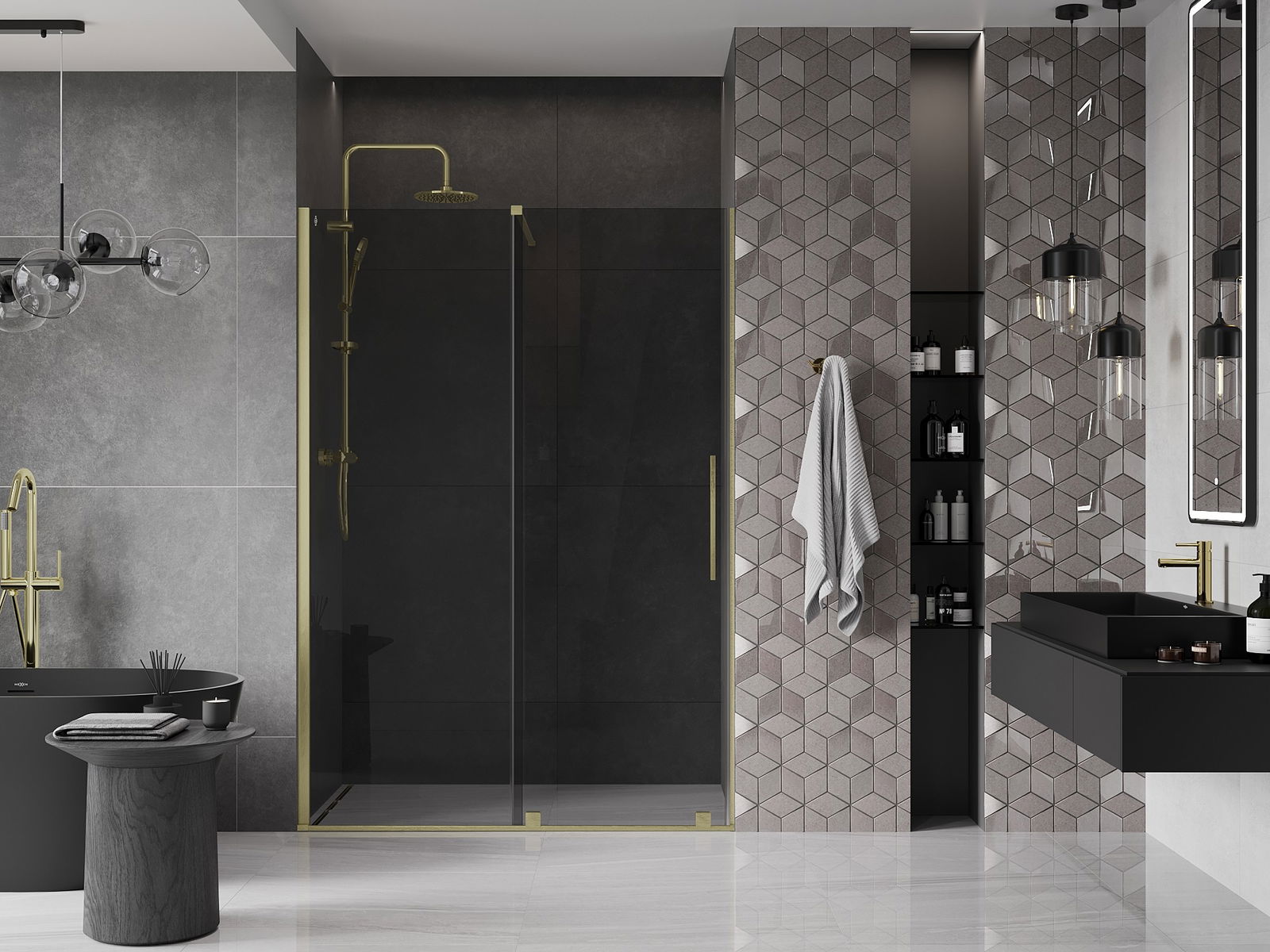 Mexen Velar sliding shower door 160 cm, graphite, brushed gold - 871-160-000-41-55