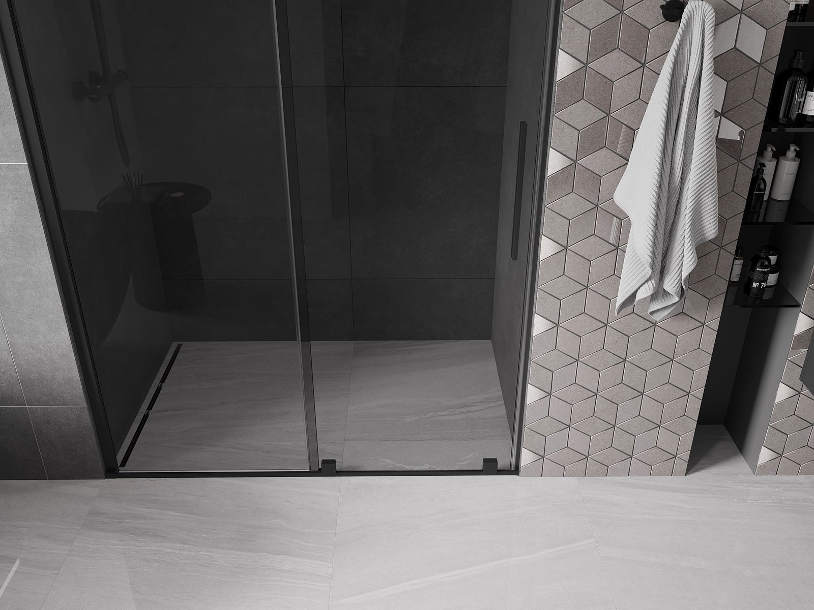 Mexen Velar sliding shower door 160 cm, graphite, black - 871-160-000-41-70
