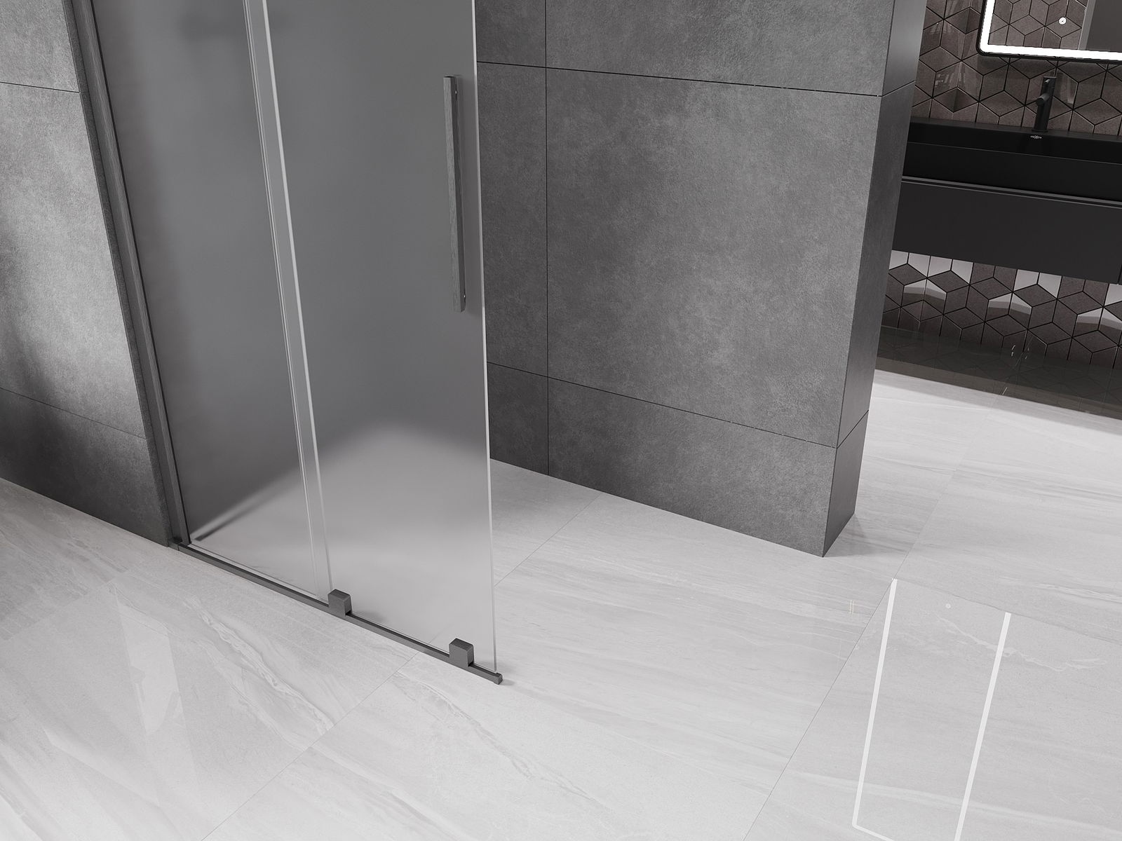 Mexen Velar sliding shower wall Walk-in 80 x 200 cm, frost 8 mm, brushed gun gray - 871-080-000-33-66