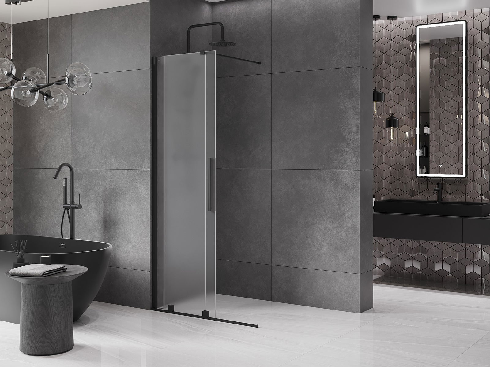 Mexen Velar sliding Walk-in shower wall 70 x 200 cm, frost 8 mm, black - 871-070-000-33-70