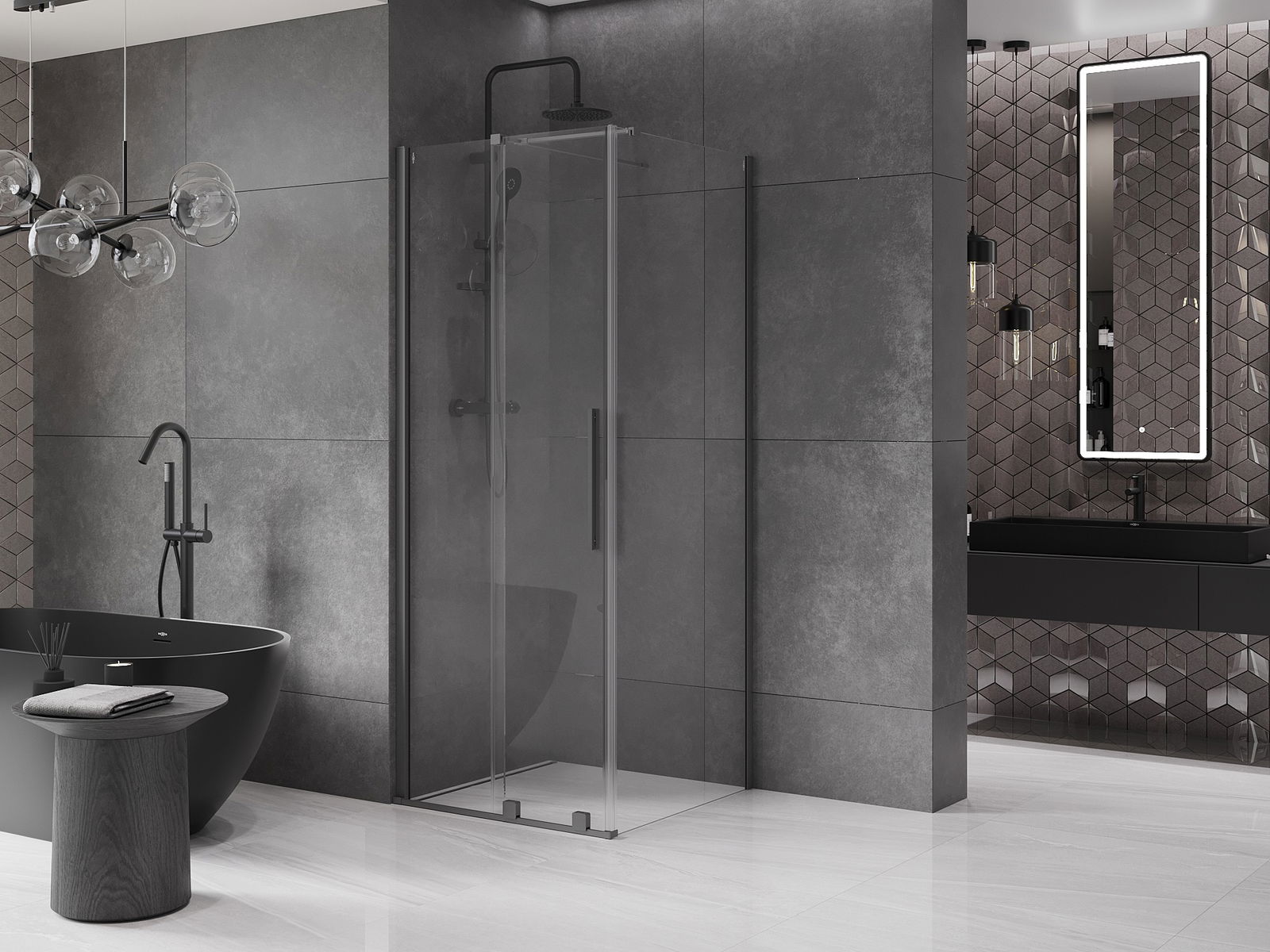 A handy and convenient handle made of stainless steel. The stylish shape combined with a finish that matches the color of the profiles gives a modern and stylish look, highlighting the aesthetics of any bathroom.
