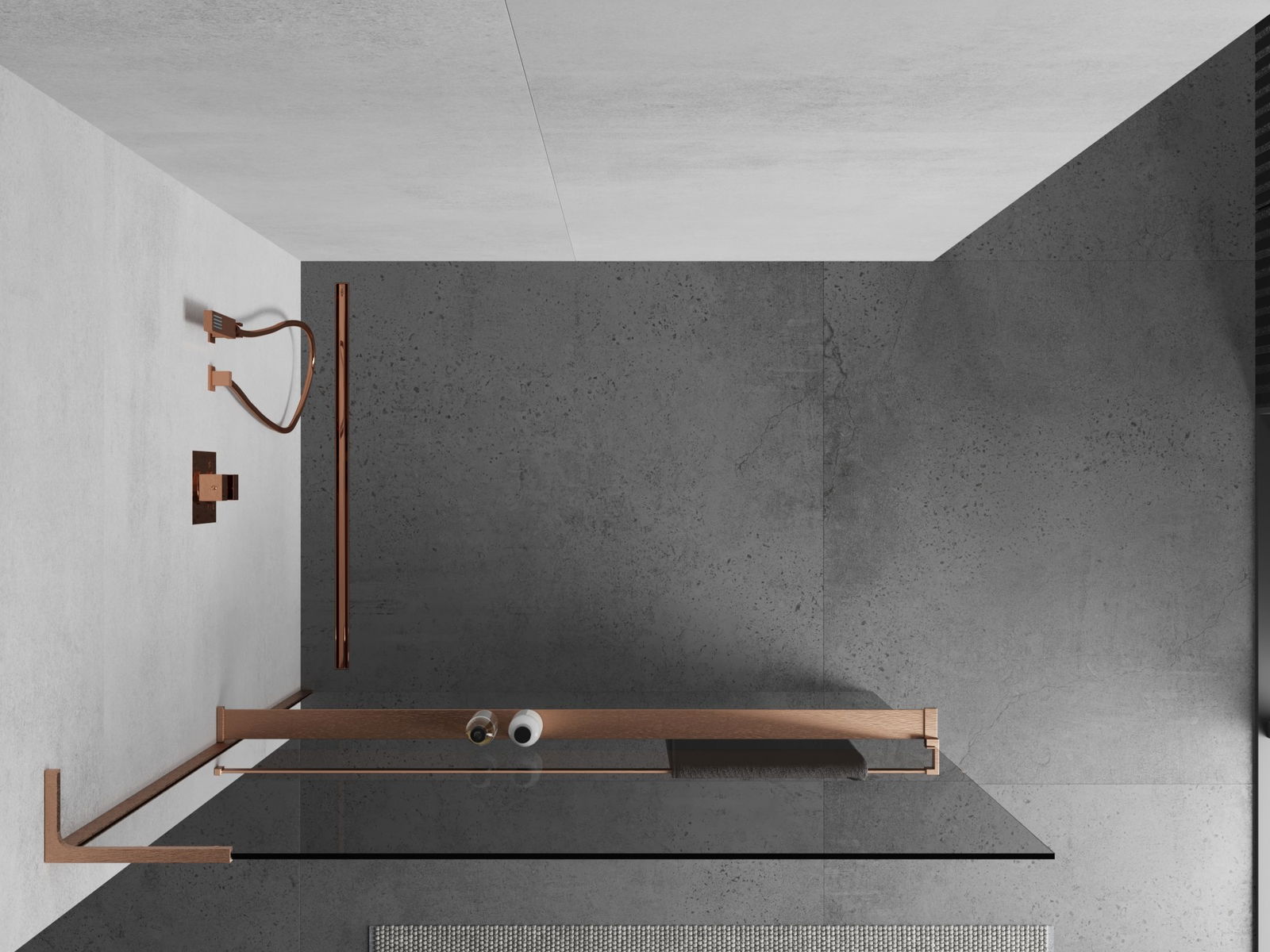 The cosmetics shelf is made from durable aluminium. The finish matches the colour of other mounting elements, making the shelf a cohesive and elegant part of other fittings. A modern design and convenience combined.