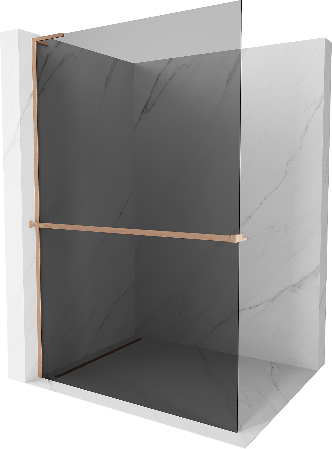 Mexen Kioto+ L shower wall with shelf Walk-in 70 x 200 cm, graphite, brushed copper - 800-070-123-65-40
