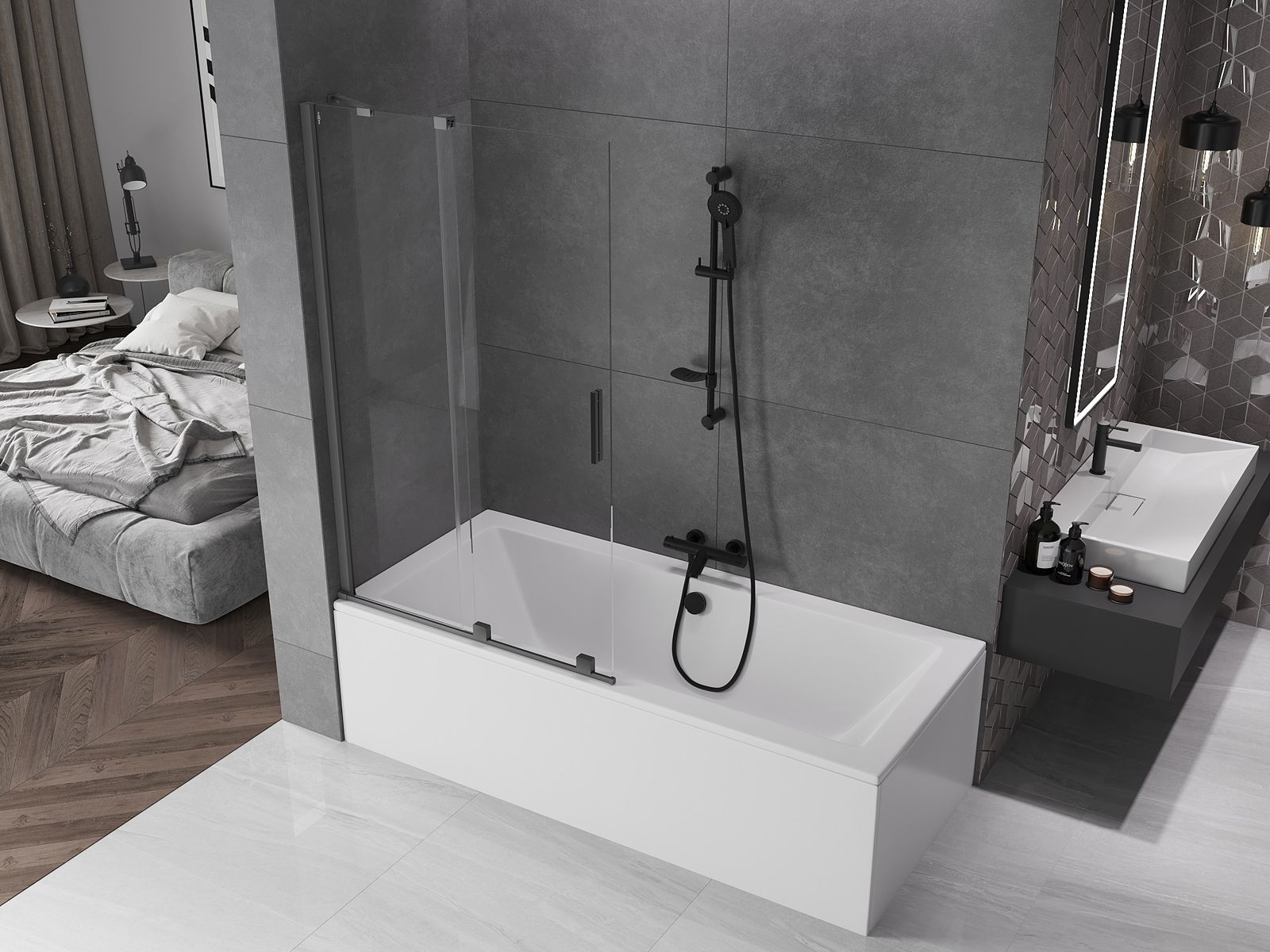 Effective protection against water spilling during bathing. The screen has seals that perfectly fit the glass surface and the edge of the bathtub. A functional solution ensuring safety and easy maintenance of cleanliness.