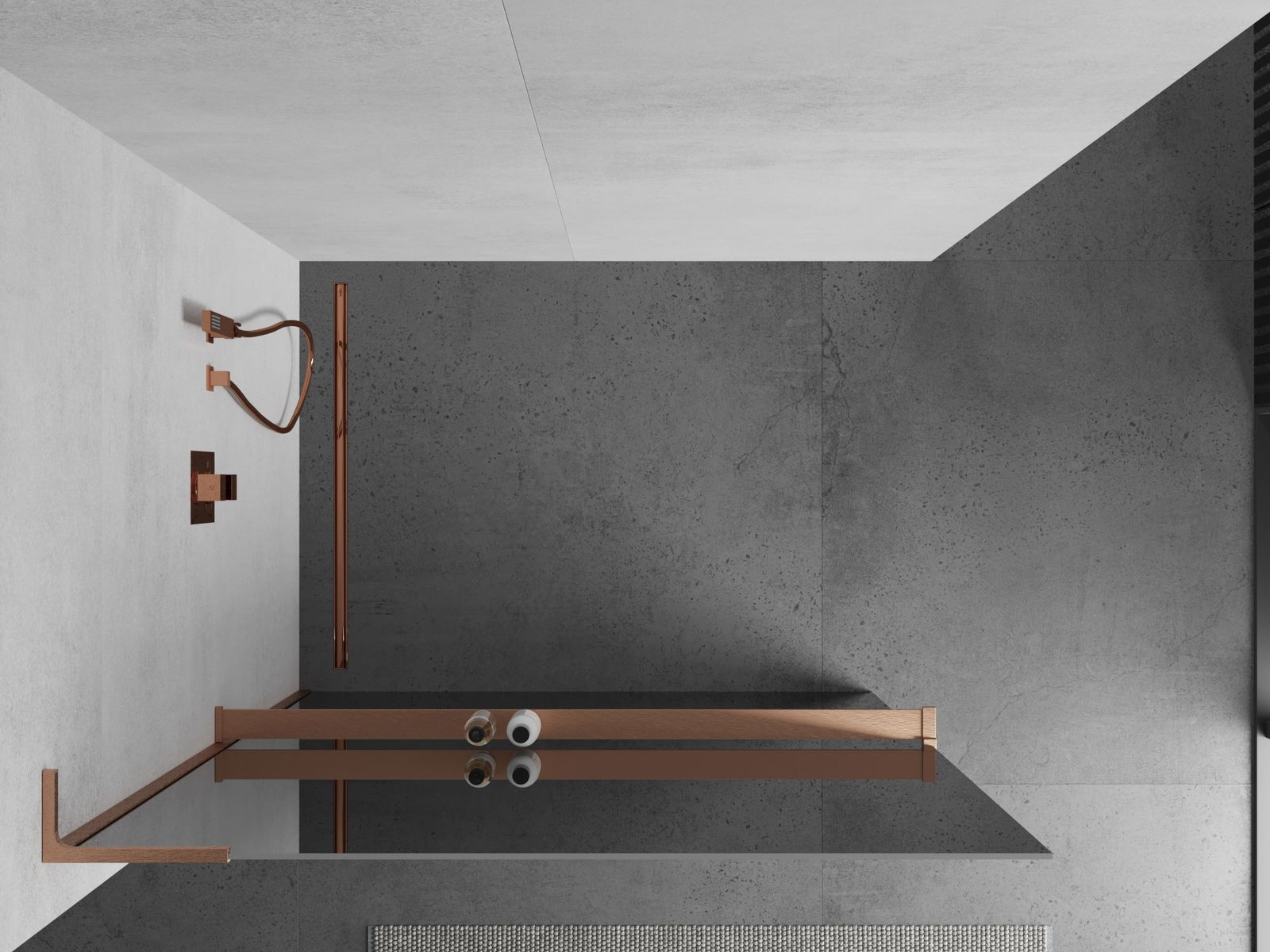 The cosmetics shelf is made from durable aluminium. The finish matches the colour of other mounting elements, making the shelf a cohesive and elegant part of other fittings. A modern design and convenience combined.