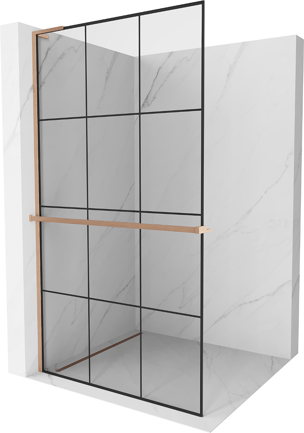 Mexen Kioto+ L shower panel with shelf Walk-in 120 x 200 cm, black grid, brushed copper - 800-120-123-65-77