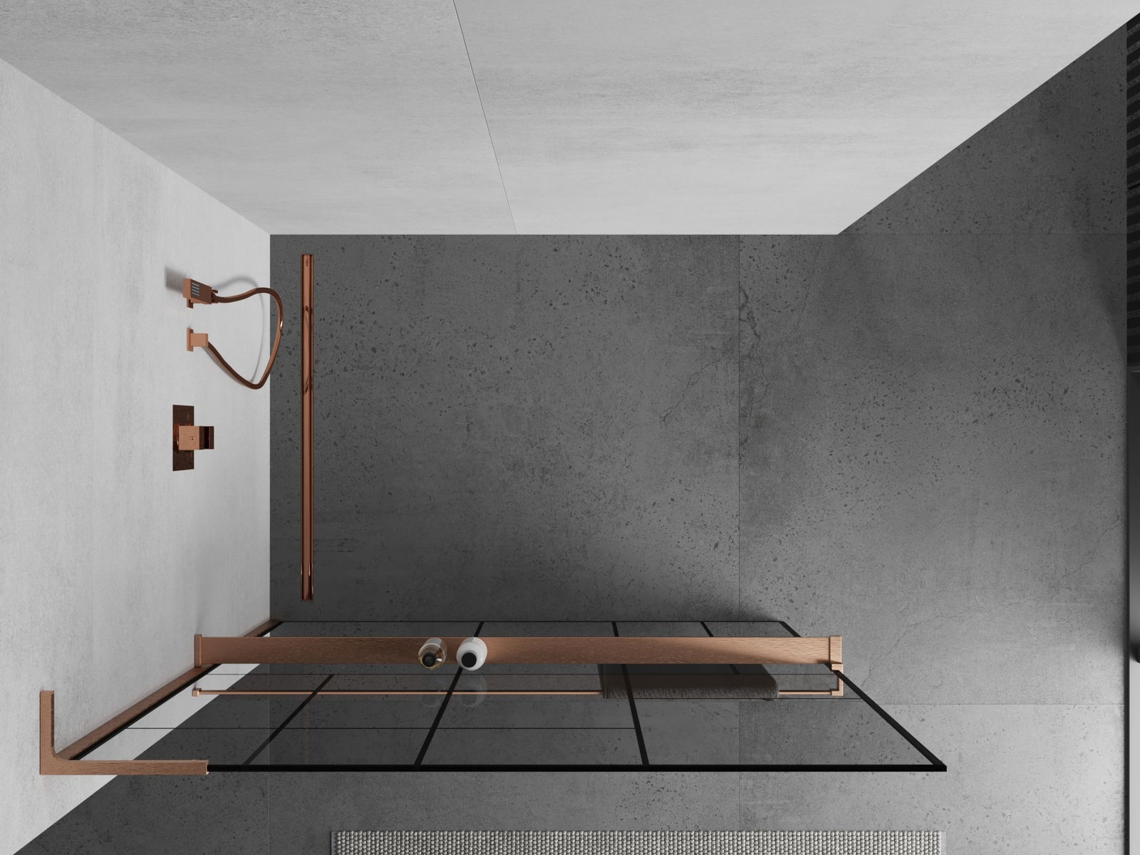Mexen Kioto+ L Shower Screen with Shelf Walk-in 100 x 200 cm, Black Pattern, Brushed Copper - 800-100-123-65-78