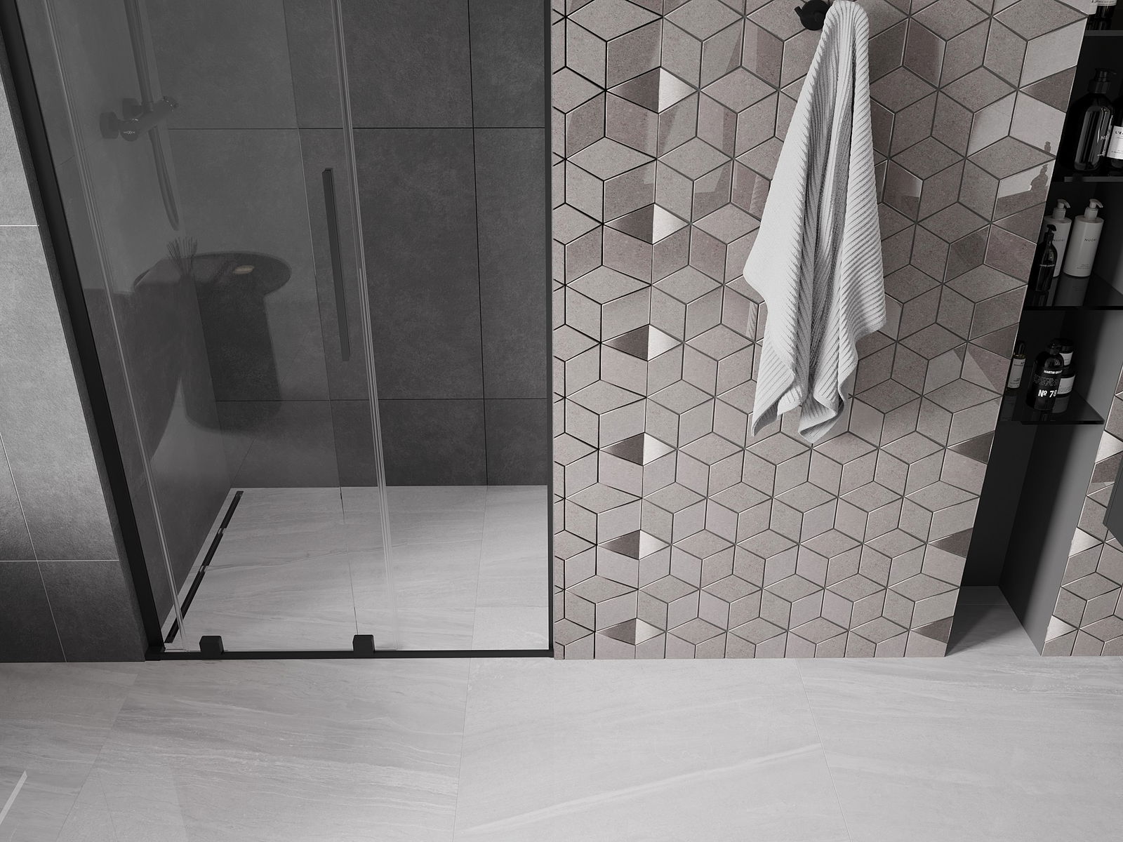 A handy and convenient handle made of stainless steel. The stylish shape combined with a finish that matches the color of the profiles gives a modern and stylish look, highlighting the aesthetics of any bathroom.