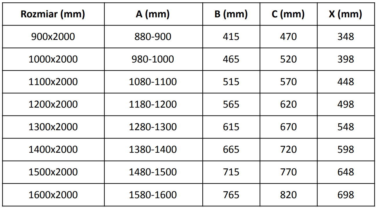 Shower enclosures, doors, and walls are standardly adapted for installation on shower trays of specific dimensions. These dimensions are provided in the product name or description. However, please note that the actual dimensions of the elements may slightly differ from the nominal values. In the case of planned installation directly on the floor, it is recommended to carefully check the external dimensions and the layout of the elements according to the technical drawing.