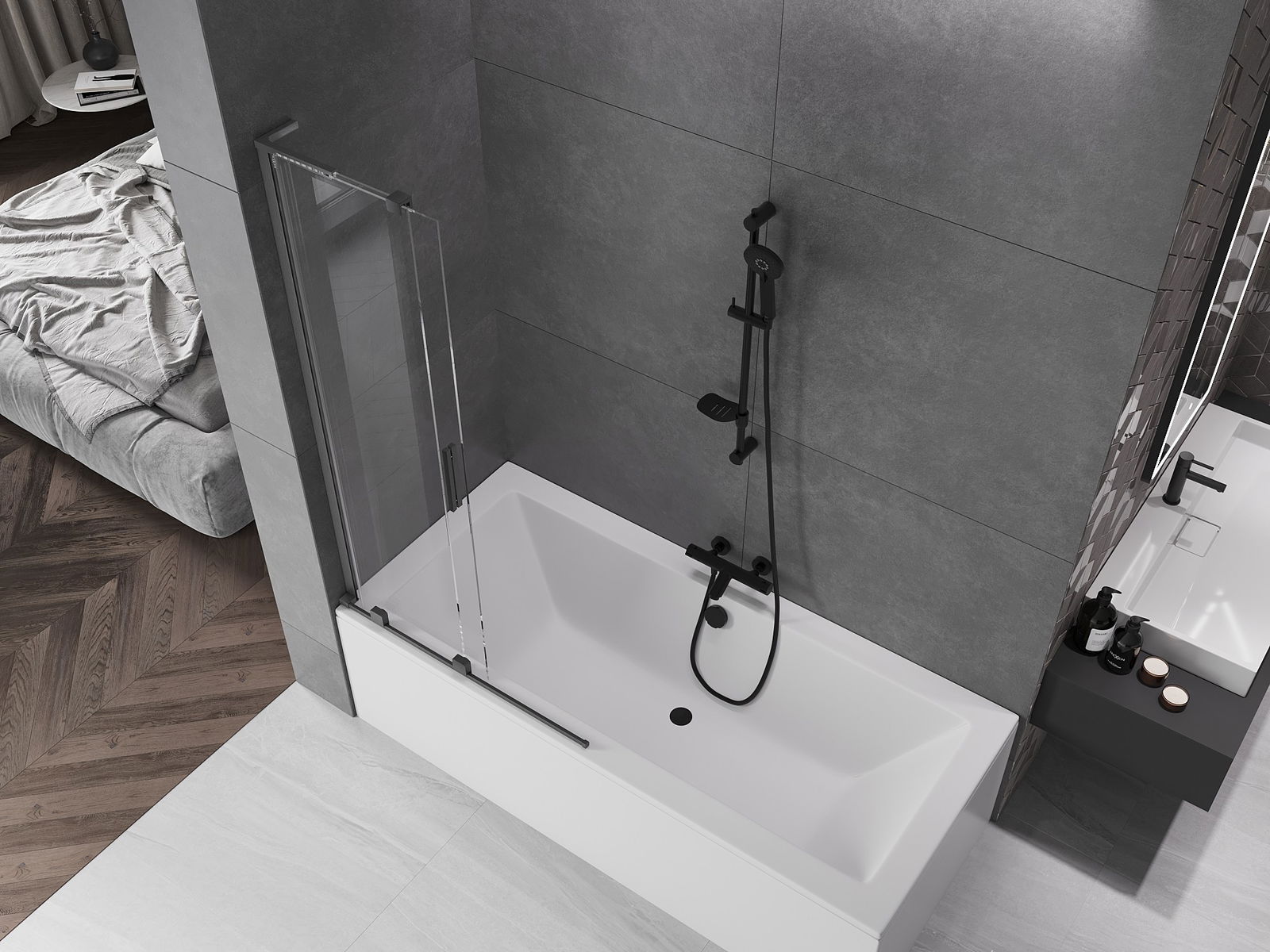 Effective protection against water spilling during bathing. The screen has seals that perfectly fit the glass surface and the edge of the bathtub. A functional solution ensuring safety and easy maintenance of cleanliness.